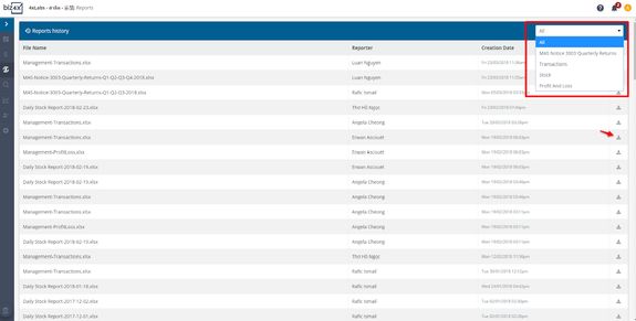 The Reports history screen will show you all the reports that have been generated, the dates they were generated and by which user. It will also provide the option to download the reports that were previously generated. Here again, reports can be filtered based on your selection.