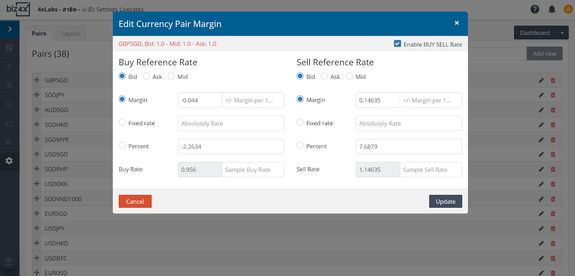 From the screen below, you will be able to enable the reference Buy and Sell rate as well as customise the margins for these figures.