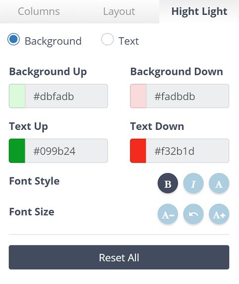 Select the Highlight tab to access options for changing the colour of the highlighted rates, as well as font style and font size.