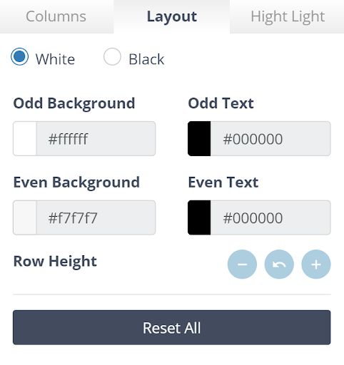 Select the Layout tab and you will be able to change the colour of the background and row height.