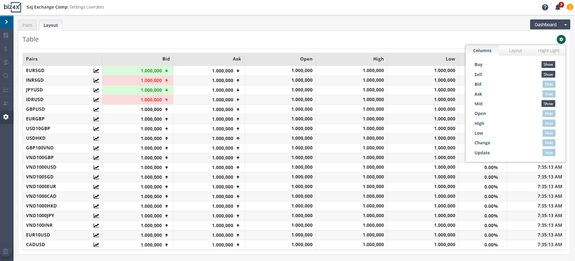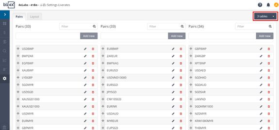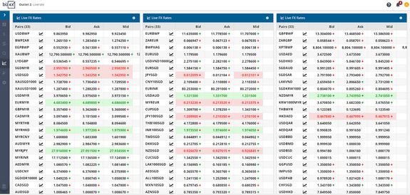 Once you are done with customising your display, you can choose to view the currency pairs in a one table or a three-table format on a dedicated screen.