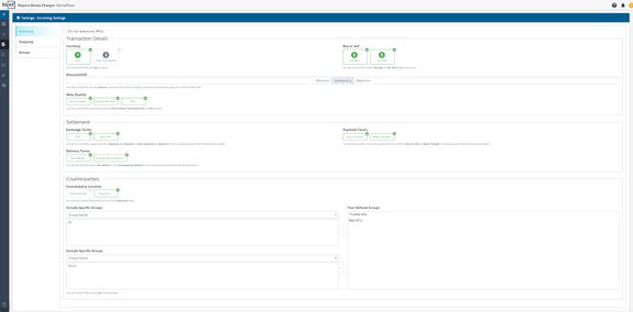 If you had earlier set up some groups of trading partners, you will be able to choose from Your Defined Groups list and include or exclude different groups. This allows you to whitelist or blacklist different groups of money services businesses. Leaving these blank will allow you to trade with everyone.