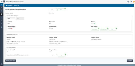 Once done, you can Select Counterparties to include or exclude groups of businesses. View Summary to review your selection options and if all is in order click on Send RFQ.