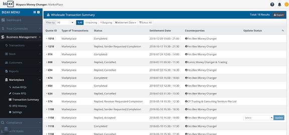 The Transaction Summary screen lists a history of all transactions you have engaged in. This list can be exported from the transaction summary screen in a csv file.